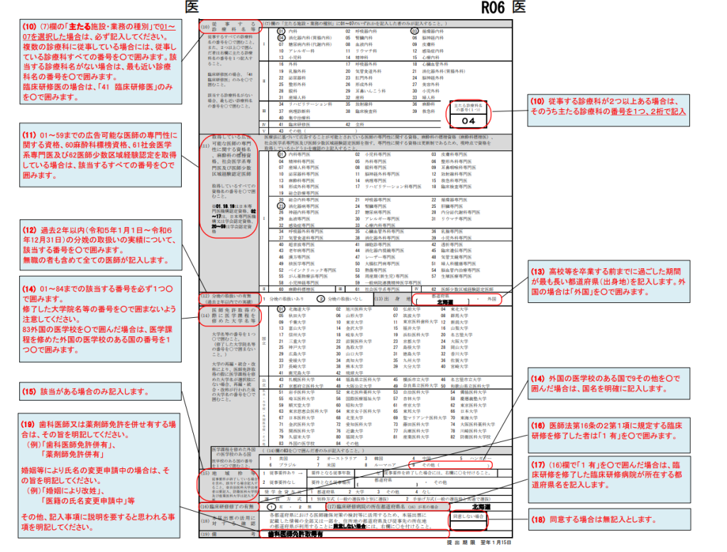 医師の資格情報届出は、医師法 第六条の3に定められており、「2年ごとの年の12月31日現在の情報」を「翌年1月15日」までに届け出ることが義務づけられています。